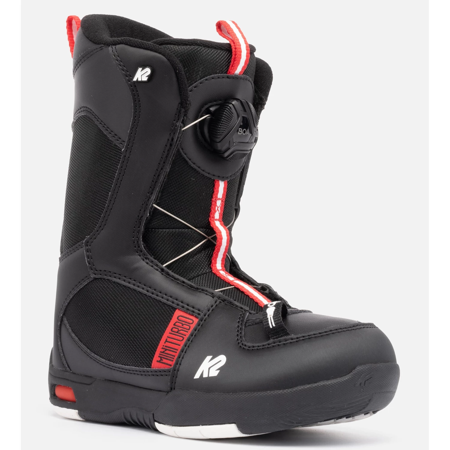 The K2 Mini Turbo is packed full of features and tech that gets groms stoked on exploring the entire hill. An easy to use youth BOA® Fit System makes it so the future groms can boot up all by themselves, the Grows-A-Long Shims help with the never ending growth of young snowboarders, while the Bright Futures™ outsole keeps younger rippers having FUN!