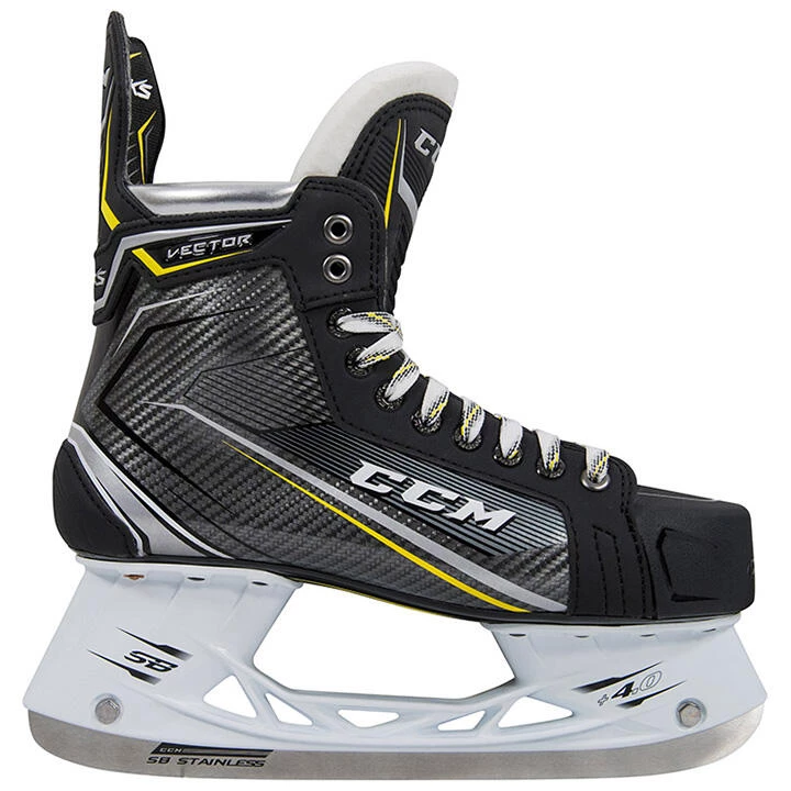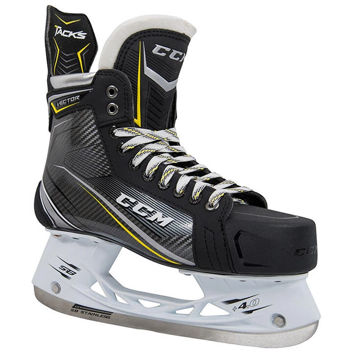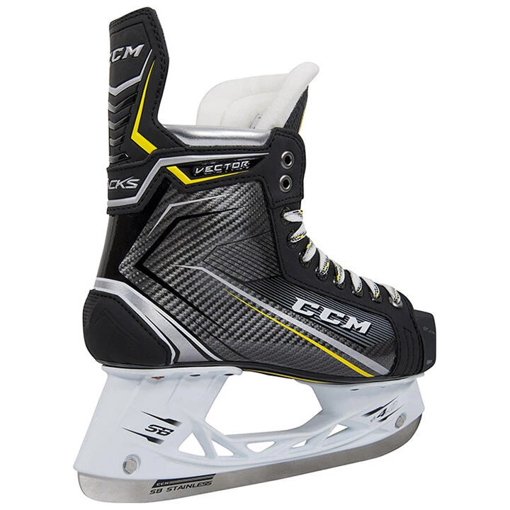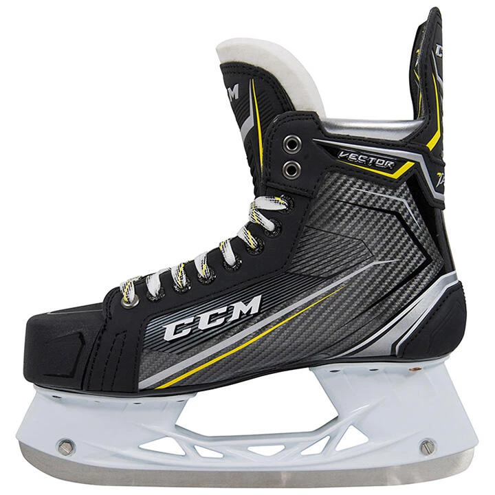 The Source Exclusive CCM Tacks Vector Skates are based on the Tacks 9060 model. The baby brother of the bunch, the Vector skates take upgrades from both the CCM Tacks 9080 and 9070 models as well as the CCM Super Tacks AS1 model. The quarter package uses MetaFrame technology and a synthetic composite material providing the best ergonomics for the 9060 skate segment. SpeedCore 1 stiffness in the core provides another rigid, lightweight, and thermo-formable option for this skate segment. While the skates above benefit from the AS1โs reinforced concave TPU outsole with exhaust for ventilation, the Tacks Vector skates benefit from a similar upgrade, but from the Tacks 9070 model. Naturally, the Tacks Vectors have the pleasure of using the AS1 tongue as well, meaning 10mm of comfortable protection without sacrificing forward flexion and mobility.