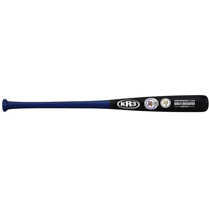 The KR3 Birch Crossover C243 (-5) Wood Composite Baseball Bat is made from the finest quality Hi-Impact Yellow Birch of the highest bat standards harvested from second growth forests being regenerated each year. Every billet is sorted and graded on structural elements then accurately weighed to ensure excellent model consistency. The Birch Crossover is strengthened with fiberglass biaxial sleeving applied with KR3’s special Rock Resin Epoxy which was designed by the President of KR3 who has over 45 years of experience in making baseball bats. This bat allows for more freedom to hit outside the contact area and almost eliminates breakage. It comes with a 90 Day Limited Warranty against manufacturers defect. Made with the finest Canadian craftmanship with in-house lab testing KR3 ensures you get the best bat every time.
