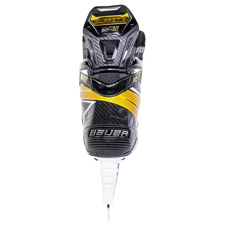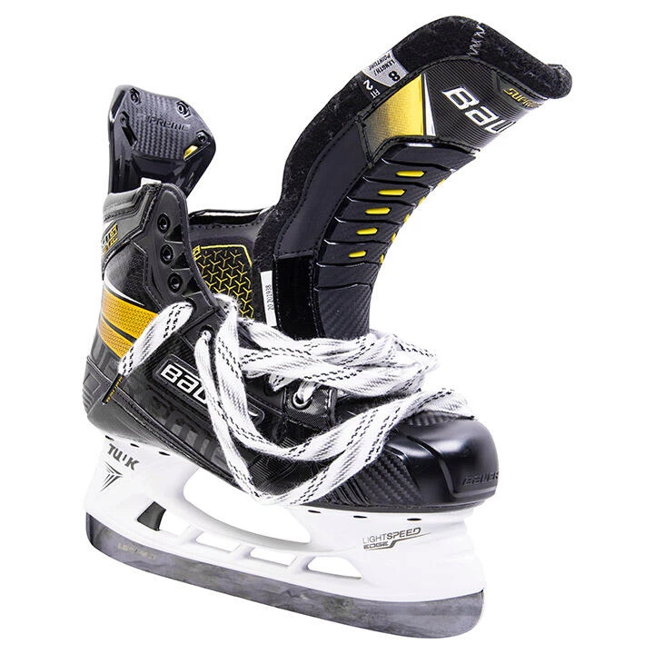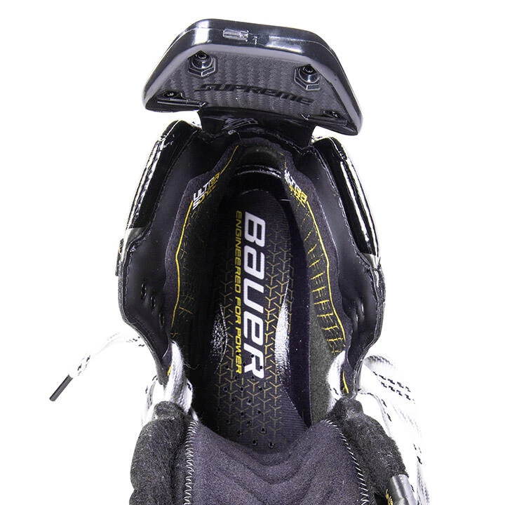 The Bauer Supreme Ultrasonic is offered in our new Performance Fit System, designed to put elite hockey players into the right fit for their style of play to maximize power and control. A 3D Lasted Carbon Curv composite combined with a unibody sole stiffens the lower portion of the boot, allowing every push to build towards maximum energy transfer and faster straight-line speed. The power boot cut increases the wrap around the foot optimal stability and support, creating a more powerful stride.